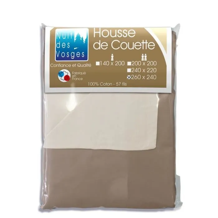 Nom du produit Nuit des Vosges Cotoval Housse de Couette Coton Bicolore Réversible 240×260 cm Coton Naturel-Canelle 260 x 240 cm